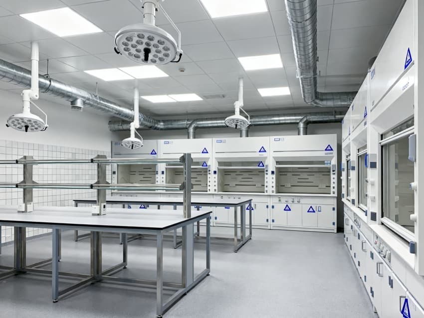 本生化研究實驗室凈化工程嚴(yán)格遵循ISO7級潔凈標(biāo)準(zhǔn),將實驗空間科學(xué)劃分為四大核心功能區(qū)域:樣品前處理區(qū)配備通風(fēng)櫥、震蕩儀等預(yù)處理設(shè)備,采用負(fù)壓設(shè)計防止交叉污染;試劑配制區(qū)設(shè)有獨立的天平室與超純水系統(tǒng),通過溫濕度智能調(diào)控系統(tǒng)將環(huán)境參數(shù)穩(wěn)定控制在±1℃與45%-60%RH;精密檢測區(qū)配置防震臺與電磁屏蔽裝置,可滿足高效液相色譜、質(zhì)譜儀等精密儀器的運(yùn)行需求;無菌操作區(qū)配備層流凈化工作臺與生物安全柜,配合動態(tài)浮游菌監(jiān)測系統(tǒng),確保實驗環(huán)境達(dá)到百級潔凈度標(biāo)準(zhǔn)。各功能區(qū)通過氣密式緩沖間與機(jī)械互鎖傳遞窗形成物理隔離,構(gòu)建起三級防護(hù)屏障。在保障蛋白質(zhì)分離純化、核酸提取擴(kuò)增等常規(guī)實驗高效開展的同時,還專門設(shè)計了酶活性檢測專用恒溫恒濕實驗室,采用獨立的凈化空調(diào)系統(tǒng)與UPS不間斷電源,可支持對環(huán)境參數(shù)高度敏感的高精度研究項目。此外,工程特別設(shè)置雙通道應(yīng)急處理系統(tǒng),包含緊急洗眼裝置、消防噴淋系統(tǒng)與防化物資儲備間,配合逃生路線熒光標(biāo)識與應(yīng)急照明系統(tǒng),全方位保障實驗人員安全與科研數(shù)據(jù)完整。?