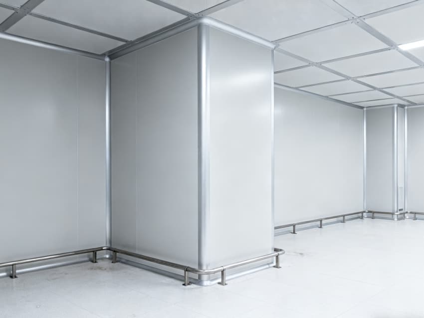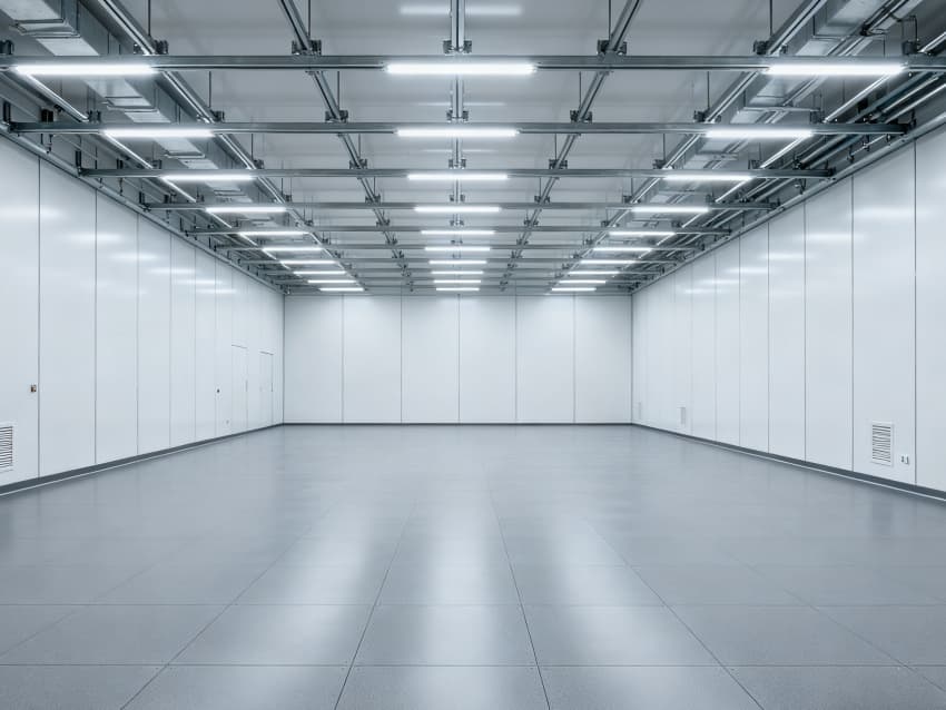 內(nèi)部按功能劃分為六大核心區(qū)域:潔凈生產(chǎn)區(qū)采用無設(shè)備空曠布局,預(yù)留8-12米柱距滿足光刻機(jī)、刻蝕機(jī)等大型設(shè)備安裝需求;管線集成區(qū)通過規(guī)整的頂部管線橋架系統(tǒng),實(shí)現(xiàn)水、電、氣、真空系統(tǒng)集中管控,減少管線交叉干擾;潔凈緩沖區(qū)設(shè)置于生產(chǎn)區(qū)入口,搭配墻面通風(fēng)口保障潔凈度過渡;設(shè)備預(yù)留區(qū)保留開闊橫向空間,支持后期工藝動線調(diào)整;結(jié)構(gòu)輔助區(qū)通過角落加固設(shè)計(jì),滿足重型設(shè)備承重需求;墻面潔凈區(qū)采用光滑防污材質(zhì),降低粉塵附著率。整體空間兼顧半導(dǎo)體生產(chǎn)的潔凈標(biāo)準(zhǔn)與功能靈活性,適配合肥半導(dǎo)體產(chǎn)業(yè)發(fā)展需求。