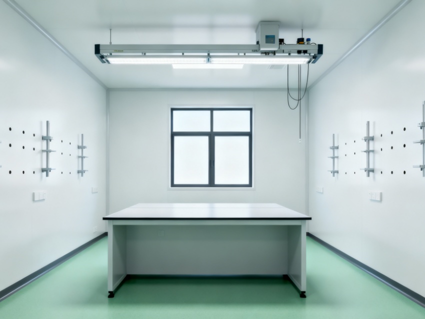 本植物學(xué)實(shí)驗(yàn)室,整體風(fēng)格簡(jiǎn)潔專業(yè),統(tǒng)一采用淺綠色環(huán)保耐磨地坪與白色抗菌墻面,既營(yíng)造貼近植物研究的自然氛圍,又滿足科研實(shí)驗(yàn)的潔凈需求。淺綠色地面為無(wú)毒環(huán)保材質(zhì),防滑耐污且易清潔,可耐受植物培養(yǎng)基質(zhì)、試劑殘留的反復(fù)擦拭;白色墻面搭配平整無(wú)縫設(shè)計(jì),減少粉塵附著,搭配嵌入式護(hù)眼照明,為實(shí)驗(yàn)操作提供清晰明亮的視覺(jué)環(huán)境。?