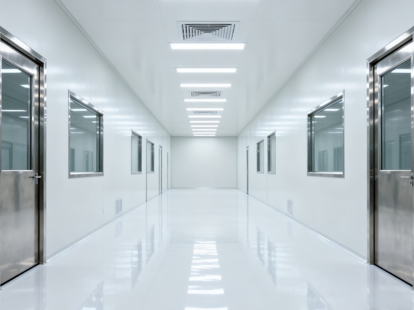 該芯片生產潔凈車間凈化裝修工程,專為芯片的高精度制造打造。車間采用高等級潔凈設計,墻面、地面為無縫抗菌材質,搭配均勻明亮的LED照明系統,營造出一塵不染的生產環境。