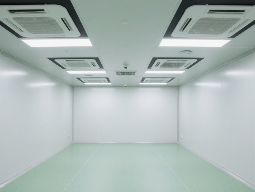 實驗室內部采用了白色和淺綠色為主的配色方案,營造出一種干凈、整潔的視覺感受。墻面、地面和天花板均采用無縫設計,便于清潔和消毒,防止微生物和灰塵的積聚。照明系統明亮且均勻,提供了良好的工作環境。