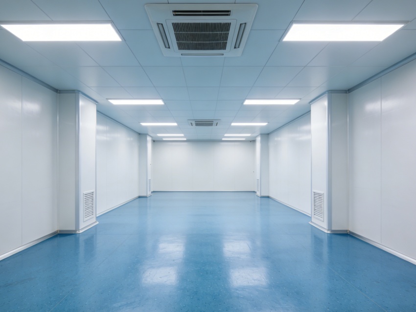 本次呈現(xiàn)的廠房電子光學(xué)車間,整體風(fēng)格簡約專業(yè),精準(zhǔn)匹配電子光學(xué)器件研發(fā)與生產(chǎn)的核心需求。廠房外立面采用淺灰色工業(yè)基材搭配大面積高透玻璃幕墻,既保障建筑密封性與隔音性,又為內(nèi)部車間引入充足自然光,外觀簡潔大氣且兼具工業(yè)質(zhì)感與科技感。均以藍色防靜電潔凈地坪搭配白色無縫潔凈墻面。藍色地面選用高耐磨環(huán)氧材質(zhì),具備10?-10?Ω防靜電性能,可有效規(guī)避靜電對光學(xué)元件的損害,表面啞光處理減少光線反射;白色墻面采用環(huán)保抗菌涂層,無縫拼接設(shè)計消除清潔死角,搭配嵌入式防眩光照明,營造穩(wěn)定的視覺環(huán)境。