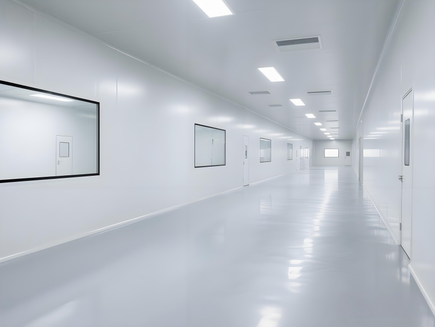 本凈化車間采用"科技極簡(jiǎn)主義"風(fēng)格,通過流暢的線性布局與模塊化設(shè)計(jì)強(qiáng)化專業(yè)感。主空間以珍珠白與淺灰為基調(diào),搭配天藍(lán)色送風(fēng)管道形成視覺引導(dǎo),環(huán)氧地坪的鏡面效果反射頂部藍(lán)色凈化燈帶,營(yíng)造無菌環(huán)境的通透感。設(shè)備區(qū)采用不銹鋼原色與玻璃觀察窗形成材質(zhì)碰撞,電子屏實(shí)時(shí)數(shù)據(jù)可視化增強(qiáng)科技屬性。嚴(yán)格的人貨分流設(shè)計(jì)通過色彩編碼實(shí)現(xiàn)功能識(shí)別,墻面嵌入式消防與應(yīng)急系統(tǒng)保持視覺平整。整體空間通過減少視覺噪點(diǎn)、強(qiáng)化功能分區(qū)線條,在滿足GMP動(dòng)態(tài)潔凈要求的同時(shí),呈現(xiàn)現(xiàn)代食品工業(yè)的精密與秩序之美,透明亞克力標(biāo)識(shí)牌與柔光照明進(jìn)一步減輕密閉空間的壓抑感。
